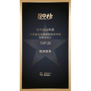 2023年12月,杭州資本榮獲投中2023年度中國最佳私募股權(quán)投資領域有限合伙人TOP20